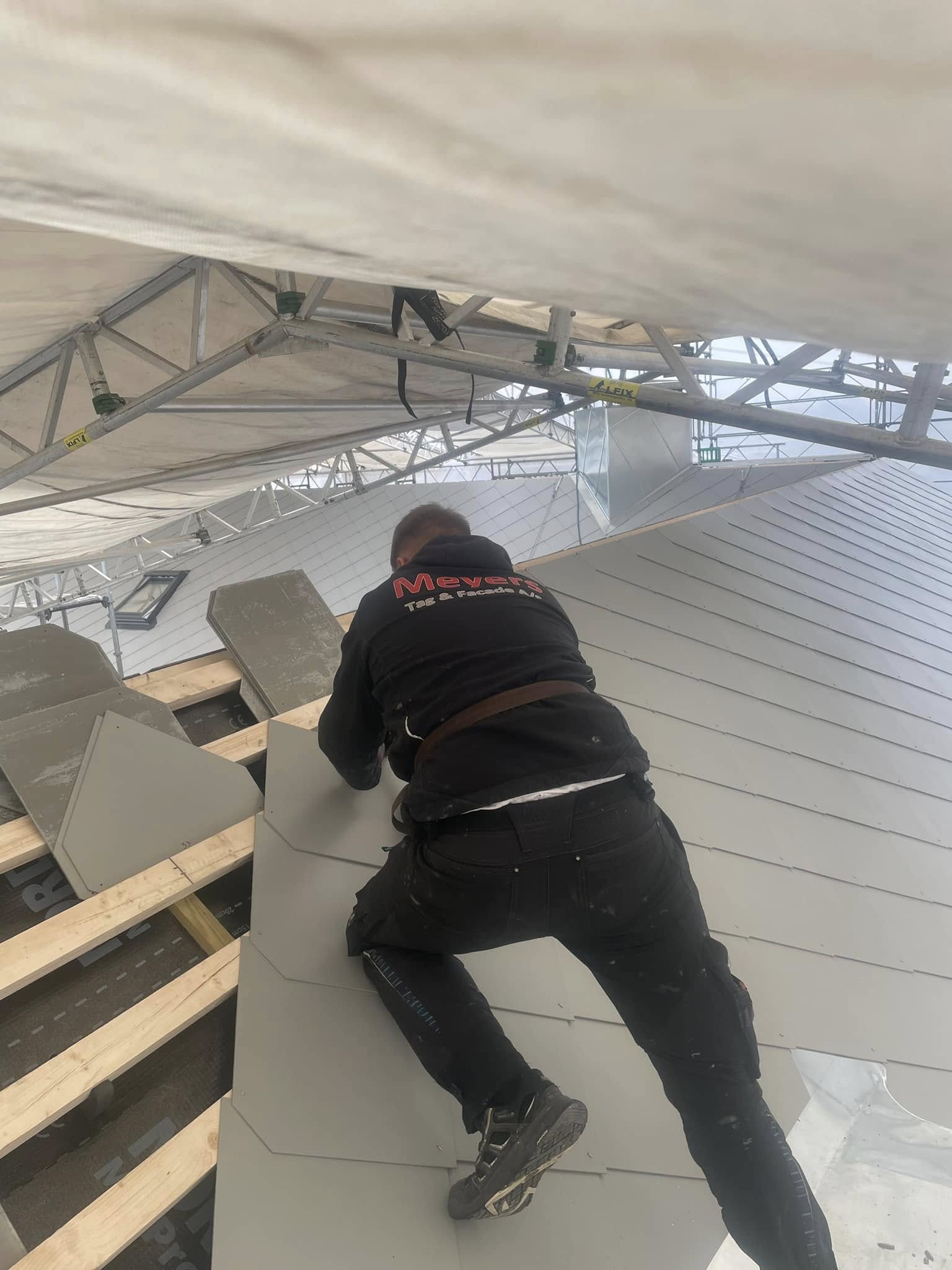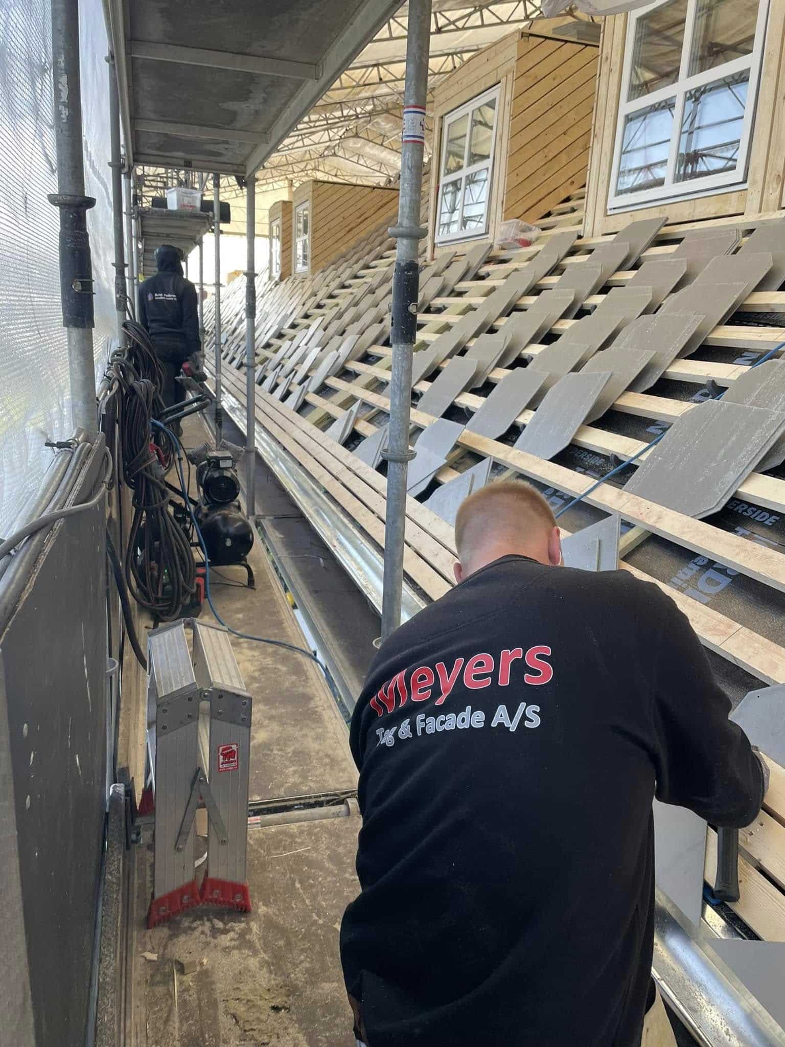I Ballerup har vi været medvirkende til at give hele boligforeningens ejendom nyt liv med nyt eternitskifertag (7500 m2)