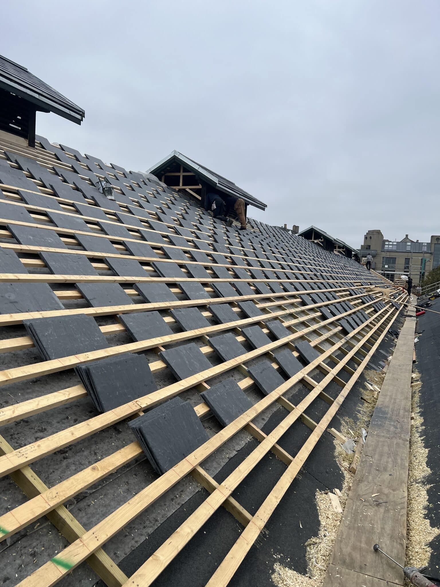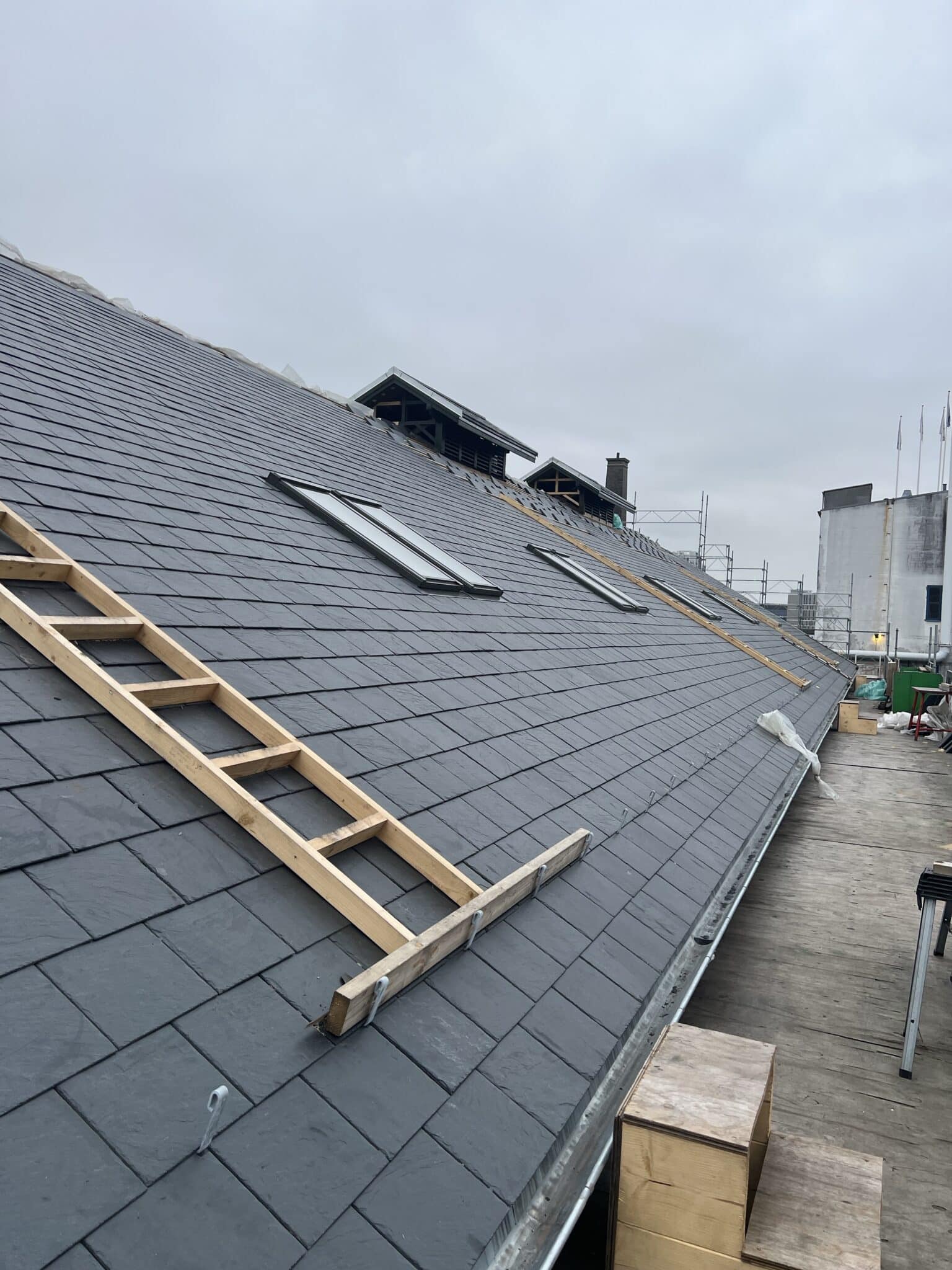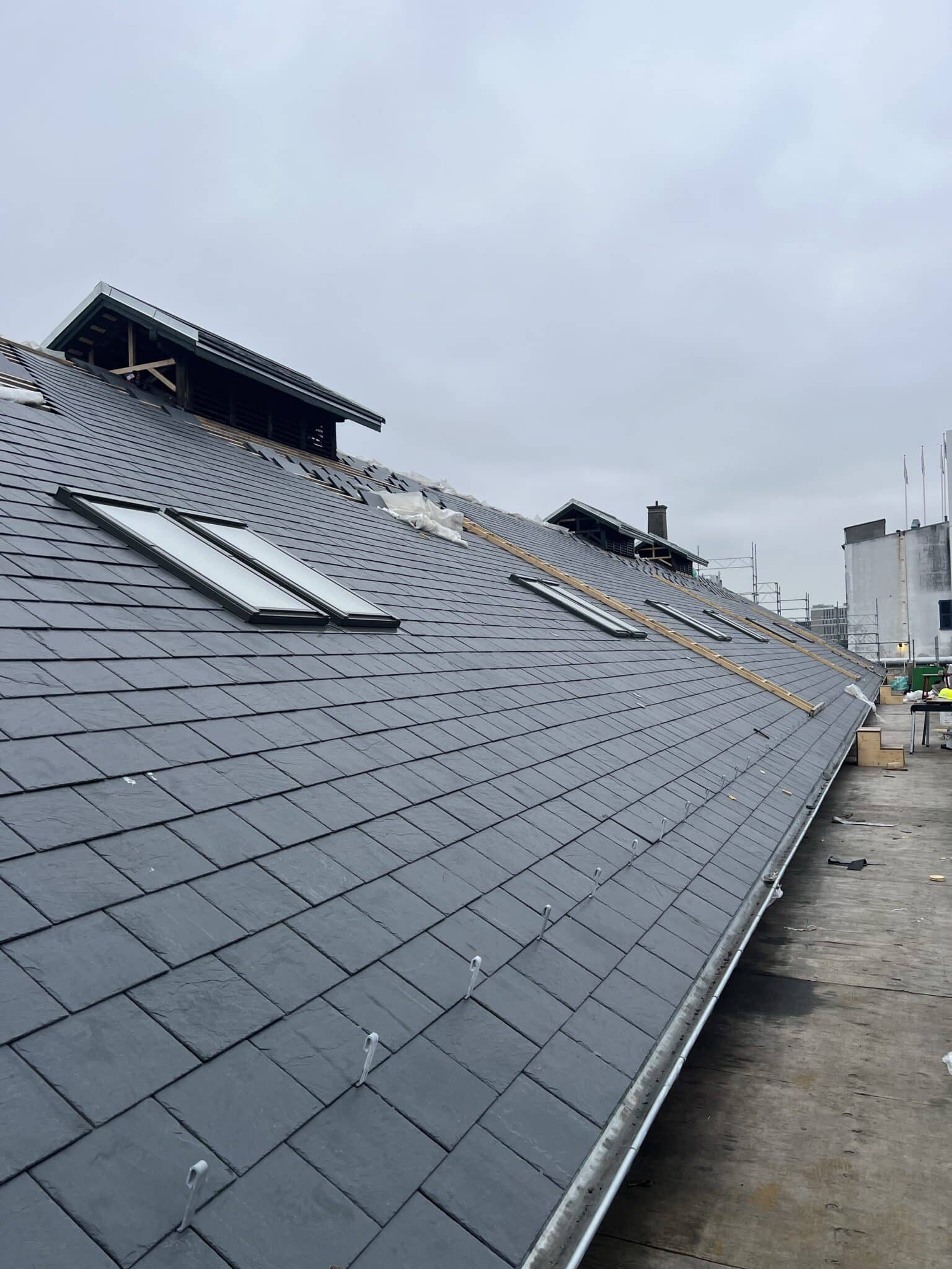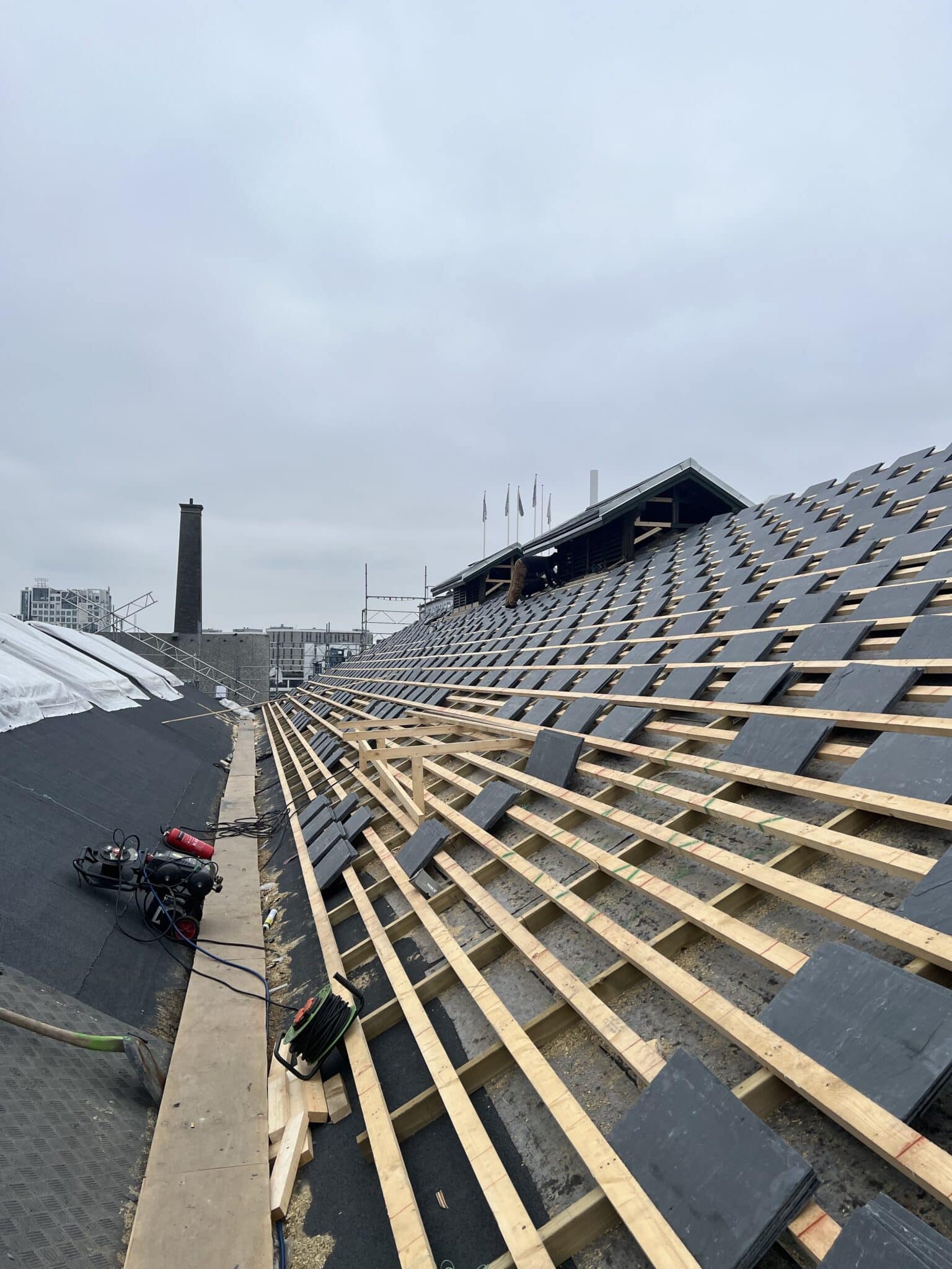 I kødbyen har vi medvirket til at give ejendommen nyt liv med nyt naturskifertag, inddækninger omkring ovenlys vinduer medvidere.